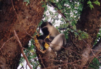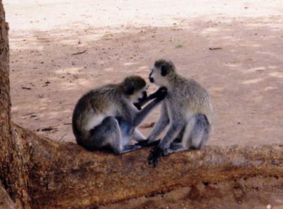 でか〜〜っ 多〜〜っ ムレ〜〜っ いいなあんなに仲間がいて……。オレより友達多そうだな……(涙)。ここにいるのはアフリカ象。ちなみにインドにいたのはインド象。そ、そのまんまだ。もしかして、アフリカにいるからアフリカ象なんて安易な名づけ方をしたのでは……?? 象の団体は、我々の車を圧倒的に無視し、ほとんど接触事故でも起こりそうな目と鼻の先スレスレをのしのしと行進して行く。間近で見るとたしかにチャームポイントの長い鼻とキバは目立つが、そこはゾウなので当たり前、そのくらいで褒めるわけにはいかないが、意表をつかれるのが耳のでかさだ。彼らが得意になって耳を動かすたびにバサバサと、空気を震わす音がする。そのまま空へ飛んでいっても全く不思議ではない。 多分あの耳はツェツェバエ対策で、オレ達人間がチャン・ツィイーの真似をするところをゾウ達は広大な耳をぶりんぶりんさせて、ハエを追い払っているのであろう。だが非常に気の毒ではあるが、どんなにがんばっても所詮象は象、チャン・ツィイーに見えるようなことはどう間違ってもありえない。フフッ……モノマネ対決ではオレ達の勝ちのようだな……。 昼食はサバンナから少し離れた、一応安全のため柵で囲まれた見晴らしの良い高台でとることになった。ランチスポットの定番らしく、簡単な木製のテーブルが並んでいる。途中で買って来た弁当がガイドより一人ずつ配られる。 オレは弁当を持ち、素早く外に出てちょうど4人用くらいの広さのテーブルをキープ、隅っこに座ってシェスティンとオアサ(と一応ガイド)を待った。礼儀正しく、先に一人で食べ出すようなことはしない。海外ではレディ・ファーストは当然のことであるし、そもそもみんなで一緒に食べ始めるというのは当然のマナーである。 しかしなんという見晴らしの良さだろうか。眼下には地平線まで続くサバンナ、そのところどころに点々と象の集団が歩いているのが見える。こんな雄大な景色を見ながら、世界の端々から集まった旅人同士、語り合いながらの食事。これ以上の贅沢があろうか? いや、無い。 そのまましばらく行儀よく待機していると、人が待っているのも知らずにのんびりと車から降りて来たキャピキャピコンビは、オレとは完全に別方向を目指して歩き、遥か遠く離れたテーブルに座って、2人で楽しそうにランチを食べ始めた。オレの存在は彼女達にとって、なかったことになっているようだ。 ……。 じゃあオレもそろそろ食べようかな(号泣)。 ああ、おいしい。おいしいなあ。でも、みんな一緒だったらもっとおいしいのになあ(涙)。なんか悲しい時にごはんを食べると、噛むたびに顔の奥がジンとするよね。 「コラッ!! シーーーーーーッ!!! シッシッ!!!!」 ……。 なんだ? ガイドが突然オレに向かって声を上げ、シッシッ!! と追い払うような動作をしている。オレは当然なんのことやらわからずガイドの姿を見つめるのだが、すると彼は、足元に落ちていた石を拾い上げ、シッシッと言いながらこちらに投げる動作をしてくるではないか。 ……どうして? オレはあんた達と同じ場所で食事をしちゃいけないのか? オレだって、ちゃんとツアー料金を払った一人の客じゃないか……。 それに、東洋人だって黒人だって白人だって、同じ人間じゃないか!!!! ガサガサガサササッ 「ぬぎゃ〜〜〜〜〜〜っ!!!!」 「コラーッ!!!! シッシッシッ!!!!!」 いきなり誰もいないはずの弁当の方から音がしたと思ったら、なんか白いものがオレのバナナを奪ってものすごい勢いで逃げている。そしてガイドはシッシッと言いながら白い物体を追いかけて行った。 ……。 確保しろ!!!!!!!!!! オレの弁当を返せっ!! せっかくバナナはおやつじゃないっていうから弁当にして持って来たのに!!!! しかしガイドの健闘むなしく、白いものはスルスルと木に登り、オレが金を払って提供してもらったはずのバナナを丁寧に皮をむいて食べ始めた。 ![]() てめ〜このヤロウ…… さては珍しいサルだなおまえ…… くそ……木の上ではもうどうにもならん……というより、サルが食べかけのバナナを今さら取り戻しても食おうという気にはならん……。っていうかオレの惨めな姿を写真に撮るなキャピキャピコンビ!!!!! ってぬおおっ!!!! ふと冷静になって周りを見回すと、いつの間にかキャピキャピコンビも含めてオレ達の周りは、白い奴らに完全に囲まれている。一応ガイドが見張っていて近づいて来るサルは蹴散らしてくれるのだが、後ろから初対面の生物が狙っていると思うと、落ち着いて食えたもんじゃない。 おのれ〜余裕かましやがってこいつら〜 ![]() 新婚家庭の出勤風景かよ!!!! 人が食っている真っ最中にじわじわと接近してくるサルどもに神経を逆なでされ、頭に来たのでオレも手を振りかざして激しく奴らを追い回す。そしてひと段落して戻ろうとすると今度は向こうが数に物をいわせて迫って来るため、一目散に車の中へ避難。うーん……野生の中