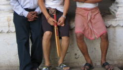 さて、ほとぼりが冷めるのを待ってからオレは再び町に繰り出したわけだが、遠いところにあるドゥルガー寺院やラムナガールフォートなど特に印象に残らないような観光地にも行き尽くし、もうそろそろすることが無くなった。よって、オレはまたライババ邸に遊びに行くことにした。しつこい…… 裏道をくねくねと歩き相変わらず厳しいインド兵の検問を抜けて、オレはなんだかんだ言って今までバラナシで一番頻繁に訪れている場所、ライババさんの家にまたもやって来た。しかし今回は特に写真を撮ろうだとか(カメラ没収されてるし)復讐してやろうとか、そういうことを考えているわけではない。またひとつ違う目的があって来たのだ。 こんちわ〜と言いながら例の家のドアを開けると、いつものように入り口の小部屋でライババさんと他のおじさん方がダラダラとくつろいでいた。オレが言うのもなんだが、ほんとあんたら仕事は無いのか。同類か(オレと)? しかしライババじいさんは本当に気前がよく、「来なさい来なさい」とオレを見るなりいつもの奥の部屋に上げてくれた。 「どうしたキミ? 何かお問い合わせか?」 「実はちょっと欲しい本があるんですけど……あ、でもその前に、せっかくだからひとつだけ聞いていいですか?」 「いいよ」 「あの〜、先日の占いだと僕のお嫁さん、今年の7月に東京で出会うってことなんですけど、考えてみれば僕まだその頃全然旅してるんですけど。年末に帰国の予定なのですから。僕が東京にいないのに本当に東京で会えるんですか??」 「そうだったか。じゃあ、東京じゃなくて他の国で出会うかもしれないぞ」 「えっ。そんな自分の予言の根幹を揺るがすような適当なことを……(汗)。じゃ、じゃあ、まあ7月にお嫁さんと会うとして、その女性は日本人なんですか? 日本人の旅行者と会うのかしら?」 「日本人かもしれないし、外国人かもしれない。でもいいお嫁さんなら、どこの国の人でもいいんじゃないか」 「ま、そうですね。たしかにそうです。国籍なんかにとらわれるのは古い考えですもんね。ライババさんは現代っ子だなあ……」 ……もういいやなんでも。オレも予言とか占いとかどうでもよくなってきた。この人を占い師だと思うから余計なことが気になっちゃうんだよ。 たしかに奥さんといつ出会おうがどこの国の女性だろうが、そういうのは問題じゃないよな。そんなの赤の他人のライババさんにわかるわけないし、だいたい出会いとか国籍とかいうことよりも、中身、心が美しいかどうか、それが大切なんだよ。無理やり出会いの時期や相手を占うなんて、ナンセンスだ。じゃあ金返せよあんた。 おっと。今日はそのことで来たんじゃなかった。日本語の本を手に入れに来たんだ。 ここで実は今さらこの家の実態が明らかになるのだが、先日の占いの時、3年前と比べて部屋の中に増えていたものがあった。それは、大きな本棚。しかも、インド以外の国、日本の本やマンガなんかがたくさん揃っているのである。よく観察してみると入り口の部屋にもずらーっと本がたくさん並んでおり、この状況からするとライババさんの正体、それはおそらくバラナシの古本屋さんだということがわかる。活字離れが叫ばれて久しい昨今、古本屋さんだけだと厳しいので、副業としてアホ占いも行っているのだと思うのである。本人に聞いてみたら「いや、違うよ。弟が古本屋をやっていて、占いの時に部屋を使わせてもらっているんだよ」ということだったが、怪しいもんだ。 なにしろともあれ、オレは故郷を遠く長く離れ日本語の本を渇望していた。そこで今回は占いに来た旅行者ではなく、本屋さんの客として、ここの本棚にあった「あいのり本」1巻(フジテレビの「あいのり」を写真つきのダイジェストで本にまとめたものである)と「おもしろ心理ゼミナール」を買いに来たのである。なおかつ、ただ買いに来ただけでなく、あわよくばそれらを無料で手に入れようと、オレはこんなものを持って来た。 「ライババさん、僕、デリーで買ったカーマスートラの写真集があるんですけど、これをそこの棚にある日本の本と交換してくれませんか??」 「ん。カーマスートラだと! どれ、見せてみろ」 オレはあの日コンノートプレイスで恥を忍びショーウィンドーを開けてもらって購入したカーマスートラ、大きいのではなく小さい方の、ミニミニカーマスートラを売却しようと持参したのである。なんで小さい方かというと、もちろん大きい方は売りたくなかったからだ。中身のエロ度数の問題である。 ライババはオレがリュックから大切に取り出した虎の子のカーマスートラ(エロ写真集)を受け取ると、興味深々にページをめくり出した。インドのご老人にはショックが強すぎるかなこれ……。 「ねえライババさん、僕その『あいのり』と『おもしろ心理ゼミナール』が欲しいんですけど、カーマスートラと交換してくださいよ」 「1冊と2冊の交換はダメだよ。差