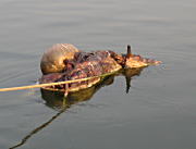 ![]() 〜火葬場、古本購入など〜 苦労の多い町に生まれて来た赤ん坊 ![]() バラナシで「ベンガリートラ」と名付けられた細い路地を歩くとすれ違う生物の割合は、インド人が10に対して外国人旅行者と牛がそれぞれ2、ノラ犬は5程度である。とにかく、めちゃくちゃノラ犬が多い。なんでも、大山のぶ代が声をあてた最後の大長編ドラえもんである「ドラえもん のび太のワンニャン時空伝」には、このバラナシからノラ犬がエキストラとして大量動員されたというほどだ。その時は出演料で犬たちが大変潤い、一時的にバラナシが好景気になり「ワンニャン時空伝景気」と呼ばれたというのだからこれはいかにも信憑性がある話ではないか。 犬が多い町というのは、犬好きでなおかつ「顔が犬に似ている」とまで言われるオレには理想の町のように感じるが、しかし油断していると痛い目を見ることになる。なにしろここはインドだけに、あっノラ犬だっ、かわいいなあちょっと頭をなでさせておくれ、くちばしを握らせておくれ、ちょっと待ってよどこ行くの! ねえちょっと!! と追いかけていると、いつの間にかまんまとシルクショップまで誘導されていたなんてことも多々あるのだ。このバラナシはノラ犬ですら自分のかわいさをうまく利用し、土産物屋からコミッションを得るために客引きに精を出さなければならない悲しい町なのである。 ちなみにここにいる大人のノラ犬は10匹中9匹くらい、ほとんどが足を怪我している。常に前足を上げて歩いていたり後ろ足を引きずっていたり、あるいは1本丸ごと無くなっていたりと非常に哀れな姿だ。ほぼ毎日、夜中になると「ギャイ〜〜〜〜〜ン!!!!」とどこからか犬の悲鳴が聞こえてくるのだが、かわいそうにおそらく寝ているところをバイクなどに轢かれているのだろう。それでもここでは旅行者がしょっちゅうお菓子をばら撒いているし、川辺に人間や牛の死体を食べに行ったりすることも出来るし、これだけの数が繁殖しているということからしても犬たちにとってバラナシは暮らし易い町なのではないだろうか。 尚、東京と全く逆で、ノラ犬が溢れている割にはバラナシでネコの姿はちいとも見かけない。おそらくネコ軍団は犬との全面抗争で敗北を喫し、別の町に追放されてしまったのだと思われる。 さて、ライババの館であーだこーだしていた翌日もオレはシワ改めムンナと顔をあわせたのだが、相変わらず奴の目はマネーの色にらんらんときらめいて、オレを政府公認のハッパ屋に連れて行き高いガンジャを買わせようとしたり、またもやエロ映画館に連れて行こうとしたり(筋金入りのエロか)、この人、金づるの興味を引くために次から次へ畳み掛ける能力は抜群だなとオレはとても感心させられた。もしムンナがホストクラブででも働き始めたら、ほんの3ヶ月でナンバーワンの座に上り詰めるのではないだろうか(源氏名:紫羽改め夢雨奈)。 しかしムンナに連れて行かれたある場所では監禁されてそこのボスにカメラを強奪されそうになるという笑えない事件も発生し(取っ組み合いになった)、奴がグルだったのかはわからないがとにかくロクでもない人間ということだけは確かである。 こやつはいかにも知恵の回る悪人らしく、オレが「ムンナさん、一緒に記念写真撮りましょ〜♪」とネコなで声で近づいても、ネコなでられに屈することなく写真に写るのは断固拒否するのだ。「どうしてえ〜ん。そんなこと言っちゃヤダ。ボクちゃみちい。いけず〜」とムンナなで声で甘えてみても、「写真は嫌いなんです。お父さんが写真が嫌いだったので、それを受け継いでいるんです」と最もらしい理由をつけて不倫中の女子アナのようにカメラからひたすら身を隠すのである。 なので盗撮してみた。 ![]() アップのおっさんではなく、その後ろでこっちを見ているのがシワ改めムンナ。一応盗撮なのでちょっと小さめにしておいた。おっさんの方は、バラナシに暮らすごく普通の良い人です(多分)。 バラナシに旅行予定のあるみなさん、彼は上手な日本語でバラナシ解説をしてくれ重宝しますが、やや危険なので一緒に部屋の中には入らないように注意してください。 さて、バラナシといえばムンナ、ムンナといえば死体である。オレはムンナとさよならした後で、一人でバラナシ名物の死体焼き場、マニカルカルカルガートへ向かった。いや、マニカルカルカルじゃなくてマニカルニカーガートか。もう個別のガートの名前とかややこしくて覚えられないな……。別になんでもいいしそんなの。 布に包んだ人間の死体を直火で焼くこの焼却場、そういえば3年前はそれなりに焼ける死体を見てショックを受け「人間とは」「死とは」みたいなことを考えたものだが、おそらく長期旅行中だからであろう、今はもはや何も感じない。 海外、ましてやインドにしばらくいると、「驚き」のハードルは日々どんどん上がってくる。「死体焼き場で死体を焼いている」というのは、