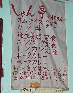![]() 〜とってもおいしいの……〜 ![]() イヤッホーーー!!!! キムチそばだっ!! ナスの生姜醤油だっっ!!! 和食!! 和食サイコーー☆ L・O・V・E・和食☆☆ 和食だ……。 和食だよ。G−SHOCKじゃないよ。和−SHOCKだよ。な〜〜んちゃって!! そりゃあつまらんギャグも言いたくなるよ。言いたくなるに決まっているだろうこんな高級料理を前にしたら。言いたくならいでかっっ!!! 生まれ育った故郷、日本を後にしてから15年。僕が、どんなに和食に会いたかったかわかるかい? どんなにむしゃぶりつきたかったかわかるかい?? ああ……今むしゃぶりつくべきは生娘の尻より日本そばじゃ……。生娘の尻を隣にスタンバイさせて、ご飯 → 主菜 → 副菜 → 汁物 → 尻 とマナー通り順番にむしゃぶりつければそれが一番いいが、衣食足りて礼節を知るなので今はマナーを守っている場合ではないしここには生娘もいない。それならば、生娘よりキムチじゃ。さあ食うぞ!! おっと、「どうせインドで出る日本食なんか、まともな味がするわけないだろう」って、そんな声が聞こえてきたぞ?? 今、はっきりと聞こえてきたぞ?? ……これはどこからの声だろう。今まで付き合った女性には全員盗聴器を仕掛けてあるから、なかなかどの発信元かを特定するのは難しいんだよな。……ていうか、このサイトを冗談がわからない警察の人が読んだら、そろそろ任意で引っ張られそうだな。さすがに自粛した方がいいかもしれん。よし、これからは真面目になろう。盗聴の受信機なんて捨てて!! え? 「どうせインドで出る日本食なんか、まともな味がするわけないだろう」って?? ……ええい、インドを馬鹿にするなっ!!! そりゃあ、今まで経験した和食はたしかに悲惨だったさ。デリーで食べた親子丼は鶏肉と卵入りお湯かけごはんだったさ。掻き揚げそばは最悪だったさ(細かく説明したくない)。しかし、この「しゃん亭」をなめるんじゃないよっ!!! 元天皇の料理番志望、その名もMr.なんていう名前の人か知らんが職人気質のインド人調理人が働く、まあとりあえずほらっ!!!