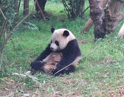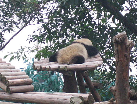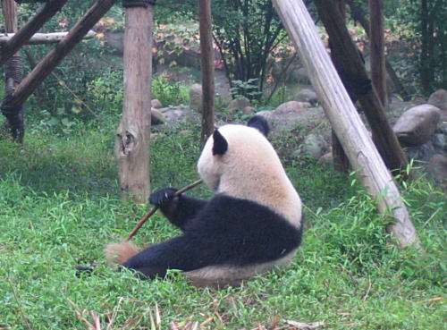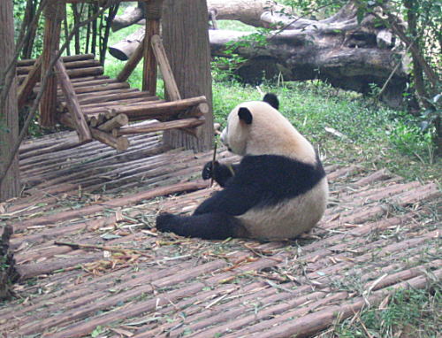 〜成都:大熊猫繁殖研究基地〜 成都は、中国でも屈指の大都会である。しかしその発展は近代に限ったものではなく、すごく昔から栄えていたっぽいので(曖昧な記述)、市内や近郊には由緒と歴史ある観光名所が揃っている。……揃っています。すいません年上の方も見てくださっているのになんかいつもタメ口で。申し訳ないです。でも文章にテンポを出すために、わざとなるべく敬語は使わないようにしているんです。どうかご理解下さい。 最も古い時期のものは、今から約4000年前に存在したという長江文明の三星堆遺跡だ。ちなみにみなさんもご記憶にあろうが、我々が教科書で習った古代文明といえば、エジプト文明、メソポタミア文明、インダス文明、黄河文明の四大文明である。メソポタミア文明なんてのはとてもロマンチックで、恋人同士が見つめ合いキスをする姿を描写した「目には目を、唇には唇を」なんて文言が収められたハンムラビ法典が有名だ。 ところがほんの30年前に発見されるまで長い間歴史の闇に葬られていたこの長江文明、実はこれこそが黄河文明よりも先に興り、なおかつ日本に伝わった稲作を生んだとも言われている非常に重要な文明なのである。オレが常日頃思っている「お昼の1時半ごろから毎日やっている30分ドラマは、なんで決まって名古屋のテレビ局が作っているんだろう??」という疑問よりも10倍くらい重要な文明なのである。 これが、三星堆遺跡から出土した黄金の仮面。異星人のようだ。 ![]() この重要な長江文明の遺跡は置いといて、次に行きまして、時代を進めて紀元後になってからの観光場所は、約1800年前の三国志の英雄・諸葛孔明を祀る成都武侯祠に、唐の有名な詩人の家だけど訪れる観光客がみんながっかりして「トホホ」と言ってしまう、トホホ草堂。そんなのが成都にはございますのよみなさん。 ……でもね、ぶっちゃけ、歴史なんてどうでもいいの。僕たちは、未来を担う子供たちなんだから。子供にとって大事なのは、そう、歴史よりも未来そして、パンダでしょう? パンダはお昼の30分ドラマよりも大事でしょう?? だってお昼のドラマを見ても愛憎だ復讐だと陰鬱な気持ちになるだけだけど、パンダを見ればあまりの可愛さについ復讐も忘れてキャーキャー叫んでしまうでしょう? アンパンマンやばいきんまんも、ヒロインのメロンパンダちゃんが出てくるといつも戦いを中断してキャーキャー叫んでいるし。「軍隊の着衣・戦闘服は必ずパンダの着ぐるみとする」という国際法でも作れば、前線でもみんなキャーキャー叫んじゃって骨抜きになるから戦争なんて無くなるよきっと。後楽園ホールで長州力の顔面を蹴撃して解雇された前田日明も、もしパンダの着ぐるみを着て謝罪していたら長州もキャーキャー叫んで許してくれたと思うよ。 ![]() ということで世界平和のためにやって来ましたパンダ繁殖研究基地。 キャーーーーキャーーーー(見る前から気持ちが高ぶって叫んでいます)!!!! どこ? オレの仲間のパンダちゃんはどこっ?? 実は今まで黙っていたけれど、僕には人間の血とパンダちゃんの血が半分ずつ流れているのです。見てください僕のこの万年睡眠不足による目の周りの黒さ。特にここ最近長時間移動の繰り返しで濃いクマが消えずパンダ色が強くなりすぎて、昨日なんてメールをチェックしたら上野動物園から年間1億円でレンタルさせてくれないかとオファーが来ていたほどですから。「リンリン亡き後の上野のアイドルはキミしかいない!」なんておだてられて。笹を食べると下痢になる体質だから丁重にお断りしましたけど。 ああ早く会いたいよう。どこ? どこなのパンダちゃんっ!! ……っていう文章を、アラサーの独身男が書いてると思うとすごく気持ち悪いでしょ。しかもこれ、キーボードじゃなくて音声認識ソフトを使って喋って入力してるんだから。部屋で一人でパソコンに向かって「パンダちゃんはどこ?? どこなのパンダちゃん!!」って話しかけてるんだぜ? しかも真夜中に。さすがに自分でもふと「なんかこの部屋に頭のおかしい奴いるよな??」と思うもん。 なので不気味なロリコン言葉はやめて、小栗旬そっくりな一成人男子に戻って冷静にパンダを探そう……、おっ、いたいた! 生パンダ発見!! あの遊具の上にっ!!! おおっっ!!!! ![]() なんかすごくダレてないか? どうしたの? 疲れたの? 営業時間中なのに、随分と客をナメた態度を取っているじゃないか。なんてやる気がないんだこのだらけたぬいぐるみ野郎は。生意気だぞっ。モノクロ映画でも表現出来る単純な存在のくせして……。 もしかしてキミは休憩中なの? 今は業務時間外かい?? そうかじゃあしょうがない。それならオレが文句を言う筋合いは無いよな。 まあ気を取り治して、次のパンダ見てみよう。ちゃんと業務中のパンダ。基本的にサービス業の世界では休憩はローテーションで回すはずだから、1匹目が休憩中なら次のパンダは当然勤務時間中なんだよね。オレも長い