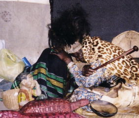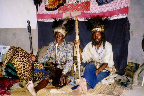![]() 〜フォーチュンテラー〜 ![]() そして遂にたどり着いた。 これこそが、まさに予言者が住むという集落だ・・・。 いや、ちょっと待て。 ここどこやねん!!! 今たしか21世紀ですよね!?チマタじゃあついこの間ヒトゲノムの解読も終わりましたよね???ここはどこ?のび太くんか誰かもしもボックスで別世界造っちゃった?? 今までいろんな知り合いの家を訪ねてきたものだが、藁と土で出来た家を訪問するのはオレの人生において初めてである。この村だったら本物のヤマンバギャルが住んでいてもおかしくない。もしくは、駆け出しの俳優がウルルンウルルン言いながら滞在していそうだ。大体、ここの住人達はオレを発見したらどう思うのだろうか?やりで突つかれたり毒矢を放ったりしてこないだろうな?? この集落の中から予言者の家を見つけるにはどうすればいいのだろう。表札もかかっていないし、そういえば大体何語を喋ればいいんだ?? ああ、しかしオレ去年盲腸取っといてよかった。もしこんなところにいる時に盲腸にかかって倒れでもしたら、多分顔に色とりどりの染料を塗られ、裸にされて呪術者に木の枝で病気が出て行くまで力いっぱい叩かれ続けるだろう。そして死ぬだろう。まあある意味それで病気の痛みは消えるのだが。 さて、小雨の降る中、藁ぶき小屋の間を警戒しながら歩いていると、原住民らしき女性が家の入り口に立っているところに出くわした。未知との遭遇だ。 「あ、あのー、この辺りにフォーチュンテラーが住んでるって聞いたんですけど・・・」 「・・・?」 「フォーチュンテラー、フォーチュンテラー!」 「オー!あそこ!あそこの家!!(と言っているふうに聞こえた)」 「あそこですか!どうも〜」 いやー、なんとかなるもんだねえ。人間のコミュニケーション能力というのは実に素晴らしい。なんだかんだ言ってもやっぱり我々は同じ宇宙船地球号の乗組員同士なのだ。 予言者のばあさんは、すぐそこの家に住んでいるらしい。オレは占いなど女性芸能人のウエスト59センチ同様全く信じていないのだが、ここに住んでいるということだけでなにかしら説得力はある。たしかにこの集落に何十年も住んでいたら、誰でも妖術の1つや2つ使いこなせるようになりそうである。 ところで、予言者は今ご在宅なんだろうか。普通に考えて、アポイントも取らずにいきなり初対面の人間が家を訪ねるのはマナー違反な気もする。一応来る前にのろしかなんかで予約した方がよかったのだろうか。しかしオレはどちらかというと現代っ子なので、のろしの上げ方は知らない。携帯かネットで予約できればよいのだが、この村にはそういう文明関係のものは無いようだ。 しかしオレは、意を決して家の中を覗いてみた。 ドドーン ![]() うわー・・・予言しそう・・・。 頭にヒラヒラとつけた鳥の羽根、手に持った怪しい木の杖、顔に深く刻み込まれた皺、部屋の中に転がる動物の置物や毛皮。全ての小道具が予言者の神秘的な雰囲気を演出している。ちなみにフォーチュンテラーは左のばあさんだ。 「あの・・・、すいません、こちら予言者さんのお宅でしょうか・・・?」 「おお、そうだが、キミは?」 「わたくし、怪しいものではありません。実はちょっと予言者さんに占って欲しいことがありまして・・・」 「そうかそうか、じゃあ遠慮なく入りなさい。」 「はい、ではお邪魔します。」 素晴らしいことに、予言者の隣にいるじいさんは英語が喋れるようだ。ジンバブエの公用語は英語であるし、こうして旅人が訪ねて来た時のために彼が通訳をやっているのだろう。 オレは、軽く挨拶を済ませると彼らの寝室兼食堂兼玄関兼リビングルームに案内された。というか入り口から一歩中に入っただけだ。予言者のばあさんはオレの突然の訪問に驚いていたようだが、意外に気さくに色々話しかけてきた。もちろん通訳であるじいさんを介してだが。予言者なら「ふっふっふ。おまえが来ることなどとうの昔からわかっておったわ!」くらい言って欲しかったのだが、どうやらオレが来ることは予言していなかったらしい。 さて、世間話もいいのだが、オレがここにいるのにはちゃんとした理由がある。ただの観光をしに来たのではなく、オレはジンバブエ警察からの特命を受けてここにやってきたのである!!まあ特命にしては料金は自分持ちというところが悲しいが。というよりおそらく予言者は領収書を出してくれないだろう。 「えーと、実は1週間ほど前にマシンゴでお金盗まれちゃったんですよ。それで警察の人から、フォーチュンテラーに犯人と金の在りかを聞いて来るように言われたんですけど・・・」 「なるほど。たしかに彼女ならそれを予言できるかもしれないな。」 「では、是非お願いしたいのですが。」 「うん?見るのはそれだけでいいのか?」 「いえいえ、見ていただけるんでしたら、それ以外にも僕の将来についても是非お願いします!!」 そりゃそうだ。犯人だけでいいはずがない。外