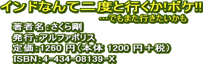 ■「インドなんて二度と行くかボケ!!」の携帯に便利な文庫版が発売になりました。