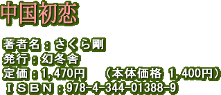 ・ブックストア談錦糸町店さまにて、一般書の5月月刊売り上げ☆第1位☆となりました。 ・全国の書店員のみなさまから推薦コメントをいただきました。 ・ダ・ヴィンチ、ダ・カーポ、Big Tomorrow、オトナファミ、週刊ファミ通、月刊宝島、本の雑誌、週刊プレイボーイ等の雑誌で大きく、時には小さく取り上げていただきました。 ・雑誌MEN'S NON-NO内でスピードワゴン井戸田さんにおすすめ本として紹介いただきました。 ・産経新聞、静岡新聞、ムック本「レッドクリフ パーフェクトガイド」、monoマガジン、フライデーダイナマイト 各誌でインタビュー記事が掲載されました。 ・NHK−BS2「熱中夜話・三国志ナイト」にて3週連続で「さくら剛の三国遺跡コーナー♪」を担当させていただきました。 ・朝日放送の「ビーバップ ハイヒール!」に三国志のゲストブレーンとして出演しました ・その他もろもろです ■単行本「中国初恋」が発売されました。※タイトルが変わって文庫化されています!(アフリカなんて二度と〜)