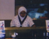 マレーシアの文化の特徴として、民族衣装(?)があげられるだろう。男はとくに変わった服装ではないのだが、女性の格好が非常に特徴的である。ほとんどのマレーシア人の女性は、頭を風呂敷のようなものでスッポリと覆っているのだ。 ↓こんな感じ。 学生から空港職員までみんなこの格好をしているのには非常に驚いた。というか、正直に言って……とても笑える。はっきりいって、この状態では人の区別がつかない。みんな全く同じ顔に見えるのである。まあ勿論その国の文化として、なにも文句を言うつもりはない。日本人の着物も外国人から見たら結構奇妙に見えるのではないだろうか? しかしちょっとだけこの民族衣装にクレームをつけたくなる時もある。今日は夜の便でいよいよインドへと向かうのだが、フライトまで暇をもてあましたオレはクアラルンプール市内のそごうに涼みに行っていた。 勿論そごうは日本のデパートなので、日本製品や日本食が豊富に取り揃えられている。レストランも日本食を扱っている店があり、まだ日本を発って数日しか過ぎていないにも関わらず、若干の懐かしさを覚える。 そんな日本食レストランに並んで回転寿司屋まであったことに驚いたのだが、そこで寿司を握っていた現地の女性を見て力が抜ける。 ↓