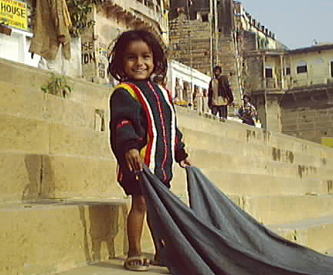 実質バラナシ最終日となる今日は、誰とも一緒に行動せず、一人でガートをぶらついて過ごすことにした。短い滞在だったが、明日の午後、また2等車両に乗ってデリーへ戻ることにしたのである。まあ短い滞在とはいっても2年分くらいの精神力は使わされたような気がするので、本心としてはデリーに戻るのではなく、2等車両で日本へ戻りたい。優しくてかわいくて料理の上手い、それでいて夜には大胆になる最高の彼女がパソコンの中で待っている、日本のオレの部屋へ。もうオレ、2次元の女の子しか愛せないから。でもちゃんと幸せだから。 ということで、人の多いところに行くとアホや泥棒や詐欺師が出現してしまうため、なるべくメインガートのアホな賑わいからは離れて、ガンガーを眺めながらひとりブラブラと歩く。ブラブラと言っても、ここでのブラはブラジャーのブラではないので勘違いしないでほしい。しばらくムラムラと川沿いを歩いていたのだが、ふと気付くと階段状のガートの下の方で、おっさんがオレを手招きしている。なんだ? 「なんか用?」 おっさんは答えずに、ただひたすら手招きを繰り返している。なんだなんだ南田洋子とおっさんの所まで降りて行くと、ジェスチャーで隣に座るように促してくる。オレと並んで座ったおっさんは、身振り手振りだけで一生懸命何かを語りかけてきた。これは……手話か? やっとわかった。この人は、どうやら口が利けない人らしい。 喋れないからといって決して卑屈になることなく、見ず知らずの外国人を隣に座らせ意思を通わせようと努力をする人。浅ましいインド人が多い中で、こんな人に出会うと心が温まる。ただ、残念なことにオレは手話が理解できない。しかしわからないオレにおっさんはめげず、今度は地面に何か文字を書いて伝えようとしてくれる。メモとペンを渡してみたのだが、おっさんの書く英語はスペルも文法もメチャクチャ、全く意味がわからない。 一体どうすればおっさんの心がわかってあげられるのだろう。このままおっさんと別れるのはイヤだ。それではこの後ずっと後ろ髪ひかれたような気分になってしまうような気がする。 必死に頭を悩ませているオレを見て、おっさんはどうしても自分の意志が伝わらないもどかしさに最後の手段にでた。 「いつバラナシに着いたんだ?」 「なんだ、それが聞きたかったのか。やっとわかったよ。ここに来たのは1週間くらい前かな。でも今日でまた次の場所に行かなきゃいけないんだ。本当はもっといたいんだけどね……。あれ? ちょっとまって。 ……。 喋れるのかよ!!」 「オレはハイカーストで、身分が高い人間なんだ。シヴァ神を崇めさらに高みに上るために、1日のうち11〜3時と、19〜21時は話をしてはいけないんだ」 「知るかそんなもん!! それに今まだ喋っちゃいけない時間じゃないのかよ」 「ああ、この分は夜に繰り越すから大丈夫」 「ずいぶん都合いいな。っていうかそんだったら最初っから喋れ!!」 「はっはっは。でももう今日行っちゃうのか。次はどこへ行くんだ?」 「一回デリーに行って、それからジャイプルに行こうかと思ってるんだけど。でおっさんオレに一体なんの用なの?」 「あ、そうそう。実はそんな君にいいお土産を教えてやろうと思ってな。どうだ。オレの店に来ないか? 質の良いシルクとかクルターパジャマとか……」 「結局それかよ!! もういいよ! もう帰る!!」 ああなんという恐るべし神の町の住人。次から次へと出てくるあこぎな商売のレパートリーの豊富さには、本当に感心してしまう。その発想力、企画力を正しい方向に活かしたなら、今頃きっとヒルズのIT社長たちの良きライバルになっていただろうに。 さて、時間を持て余したオレは、あっちへ行ってはノラヤギを追いたて、こっちへ来てはインド人の子供をいじめ、露店で買った数珠を振り回しておっさんに怒鳴られたり、ノラ牛をいじって逆に角で突かれたりしながらガートをふらふらと歩いていた。ちなみに数珠をぞんざいに扱っていて怒られた時は、「ああ、厳格なヒンズー教徒の人の前で悪いことしちゃったなあ」とちゃんと反省したのだが、オレがごめんなさいと謝ったところ、 「まあ知らなかったなら今回は大目に見てやろう。じゃあそういうことでうちのシルクショップに来てお土産を……」 といつものパターンになったため、反省は即時撤回した。どうやらインド人というのはとにかく会話にオチをつけないと満足が出来ない人種らしい。もはや国の存在自体がインド新喜劇と呼べるレベルである。旅行者としてはオチの度にいちいちコケていたらすぐに打撲や捻挫で傷だらけになるため、インドを旅する時は海外旅行保険は必須であろう。 ![]() ←だが、そんな基本的に憎たらしいインド人も、最初はこんなに、食べちゃいたいくらいかわいいのだ。この子だったら、是非お土産に日本に連れて帰りたい。そして将来立派にオレの嫁を務められるように、オレの好みにあ