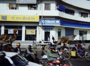 いつの間にか車窓の風景は荒れた山肌から砂地へと変わり、ひょろひょろと背の高いヤシの木がハイウェイに沿って点々と生え出して来た。うーん、南国だ。おっ! ラクダだ! ラクダが歩いている! やっぱり砂漠にはラクダがいるもんなんだ! このウキウキ感はなんだろう。車内の乗客達も窓の外の砂漠や道行くラクダを見て盛り上がっている。インド映画ならまさに今が踊り時である。できることならオレも隣のオヤジ達と手を取り合って、砂漠をバックに一生懸命踊りたい。きっとどこからかドレスや装飾品で派手に着飾った美女軍団も現れるだろうから、オレはビックリした顔をして出迎えよう。 ということで、デリーを出てハイウェイを走ること6時間、砂漠の街ジャイプルへ到着した。 ジャイプルはラジャスターン州の州都ということもあり、道は結構しっかり整備され、車やバイクもたくさん走っているのだが、人間の他にも様々な生物が道路を走っている。牛や犬はもちろんのこと、ロバ、ブタ、馬、ラクダ、象が車と一緒に走っている姿は圧巻である。さすがに道路の向こうから象が突進してきた時は、腰を抜かすことこそなかったが、タラちゃんのように悲鳴をあげた。 →ラクダも交通ルールも守れば渋滞にも巻き込まれる。勿論馬や象は人が乗って操っているのだが、リクシャに乗っていても平気で象にひかれそうになる。 もう、驚いたゾウ! ……今バカにしたあなた。 そんなあなたも実際道端を走っている象を見たら絶対同じこと言ってしまうと思います。 ところで象には大型免許持ってれば乗れるのだろうか? 給油いらずで便利そうだが、ドライブスルーには入れそうもない。 さて、そんなジャイプルの交通事情を眺めながら、オレはオートリクシャに乗っていた。なんでも道を歩いていたら声をかけてきたリクシャワーラー(リクシャの運転手)が、なんと無料で観光に連れて行ってくれるというのだ。 あやしい。 いやいや、もっと素直になろう。本当にサービスで言ってくれてるのかもしれないのに、頭っからこんな毒鬼警部のように疑ってかかってはいけないな。 「おっさん、今からどこ連れてってくれるの?」 「そうだなあ、じゃあ△※□□〇(理解不能)に行こうか」 「ああ、あそこね!」 おっさんは手馴れた感じでスイスイとジャイプルの裏路地を埃を巻き上げて進んで行った。途中ジュース屋で一服したりしながらも、しばらくしてリクシャーはお寺のような建物の前に滑り込んだ。エンジンを切る運ちゃん。 「さあ、着いたぞ!」 「ほーい」 ここが先程運ちゃんが言っていた△※□□〇だということだ。この寺はジャイプルの観光名所なのだろうか。だが、妙に人気がない。しかも見たところ門が閉まっているようだ。 「この寺は、午後5時になると閉まるんだ」 「へー、そうなんだ。やっぱおっさんも観光業だけあってよく知ってるねー。……じゃあなんで来てんだよ!!」 「よし。どうだ?ひとつ提案があるんだが」 「……回りくどいな。なんだよ」 「実は、この近くにカーペット工場があるんだ。そこで絨毯を作る過程を見ることができるんだが、ここは一つキミの知識の向上のために見学に行かないか?」 「おのれ……。最初からそれが目的かよ。たしかに興味はあるけど、オレは何も買わないぞ」 「もちろんさ。何も買う必要なんかない。ただ知識を高めるため、それだけだ」 「わかったよ。どうせもう今日は時間も遅いし他に行くとこないからな」 「よーし、じゃあそういうことで」 一度わざわざ普通の観光場所に連れて行き、閉まってるのを確認させてから誘導するという手の込んだ、しかしバナナ大使のイニシャルトークのようにバレバレなやり方。教科書通りに進めば、 1.カーペット工場で熱烈な歓迎を受ける 2.カーペットの作り方を懇切丁寧に教えてもらう 3.土産物コーナーに連れて行かれ何か買うまで監禁される という王道パターンになるのだろう。どうもインドに来てから監禁慣れしてしまって、怪しいところには近づかないようにするとかいう用心深さがなくなってしまった。こんなことではいけないな。 面白がってるという意見もあるが……。 カモを捕まえて実に嬉しそうなおっさんのオートリクシャーに乗って、カーペット工場へと連行される。工場の前の道路には、荷物運び用のラクダが何匹か電柱に繋がれていた。おっさんと一緒にしばらくラクダをつっついて待っていると、工場の中から実に怪しいおっさんパート2が現れ、熱烈なおもてなしをしてくれる。 「ハーイ! ジャパニーズだな? よく来た! 工場長のサンディだ。よろしく」 「作者です。よろピクルスです」 「……さあさあ、じゃあ中に入ってくれ」 リクシャのおっさんは外で待っているということで、オレが単独で絨毯工場に突撃する。中では従業員の人たちがそれぞれの担当の工程で作業をしていた。しかし工場見学なんて何年ぶりなんだろうか。小学校の社会科の授業で有玉西町の物流倉庫を見学