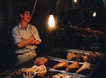 ![]() 〜東京のようなイラン2 ハミドとマスド〜 洞窟を訪ねた夜、暇を持て余してハマダーンの市場をブラチラ歩いていると、……あ、ブラチラじゃなくてブラブラ歩いているとだった。気を取り直して、ブラチラ歩いていると、ひと際ギョッとさせられたのがヤギの部品を売るヤギ屋さんであった。部品といっても、ゴジュラスや「ドラえもん のび太と鉄人兵団」のザンダクロスのように購入して組み立てると新しいヤギが出来上がるというわけではなく、その全く逆で、当初は生きていたヤギをバラバラに解体し、細かい部位にわけて陳列しているのである。 その店では、「ヤギに関してはうちに無いものは無い!」とヤギ界の東急ハンズのごとく、ヤギの肉や内臓や4本足や黒ヤギさんからの手紙といったあらゆるヤギ関連の部品を取り揃えているのだが、その中でも最もグロテスクなのは切断されたヤギの頭部である。 体毛を剃られ目をギョロッと開けた頭だけが店先に並んでいる姿はとても猟奇的で、ギニーピッグの次回作のロケがここで行われてもなんら不思議ではないほどだ。むき出しになった歯や、肉やら骨やら血やらなんかぐちゃぐちゃしたのが固まっている首の切断面などは、到底見ていられるものではない。1頭1頭よ〜く観察してツンツン触って写真も撮ったが、到底見ていられるものではない。 これを平然と売っている店員もなかなかすごいと思う。これだけたくさんの頭を怖がらずにとっかえひっかえ扱えるのは、ハマダーンのヤギ屋の店員かジャムおじさんくらいである。 こんなのをイランの主婦はルンルン気分で買って行くのだろうか? 日本の主婦がフランスパンや長ネギが顔を出したスーパーのレジ袋を持ち歩くように、イランの主婦はヤギの生首が顔を出したレジ袋を持ってバスに揺られて家に帰るのだろうか。イランでは「あ〜らおくさんお買い物?」と言われるだけかもしれないが、日本だったら即逮捕である。 しかし、そもそも生首なんて何のために売っているのだろう? やはりまな板の上でカッパーン! と包丁で叩き割って、ヤギミソなどを食べるのだろうか。それとも、暖炉の上の壁にシカの剥製の代わりに取り付けて、自慢げな主人がロッキングチェアーに揺られながらパイプをくゆらせるのだろうか。さすがにそれは、貧相だ。あるいは、黒魔術の儀式で死神への生贄として奉げ、旦那の愛人を呪い殺すのに使うのかもしれない。きっと呪われた愛人宅では、丑三つ時になるとメーメーメーメー聞こえてくるのだ。 頭や腸をずらりと並べてカッコつけるヤギ屋。
