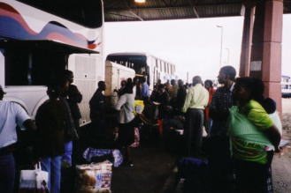 ![]() 〜経済崩壊の国〜 プレトリアを出て、国境に着いたのが翌朝5時。 ご覧の通り、南アフリカ発のバスはかなり豪華だが、もはや白人はいない。黒人の長蛇の列に並び、入国審査を済ませる。ある意味、本当のアフリカはここから始まると言ってもいいだろう。 ジンバブエと聞いて思い出すのは、昔何かのテレビ番組でユースケサンタマリアがVTR出演した時に、「こんにちは。僕は今ジンバブエにいます」と言って笑いをとっていたことだ。 つまり、今までジンバブエなんてギャグのネタくらいでしか聞いたことがないということだろう。もしかしたら友人にメールを出して「今僕はジンバブエにいます」と言っても誰も信じてくれない可能性が高いのではないだろうか(涙)。むしろ「つまんない」とか意味不明の感想が帰ってくることも十分考えられるので、ここから誰かにメールをするのはやめておこう。よく考えたら、「今ジンバブエにいます」などと言ってウケを狙うのはジンバブエ人にとても失礼だ。 南アフリカを出たことで喜ばしいことは、殺される危険度が若干下がったということだ。治安がいい国などは無いにしても、昼間っから普通に強盗が出る街はもうナイロビ(ケニア)までは無いのだ。都市部は夕方以降は危険だが、田舎の方は下手したら夜でも出歩ける。・・・。アフリカに来ていつのまにか「夜出歩ける」というだけで感謝するようになってしまったオレは、日本に帰ったらきっと毎晩感謝しまくりだろう。 ジンバブエの道端に一人ポツンと降ろされたのは、到着予定時間の7時から5時間程遅れた昼の12時だった。結局15時間もバスに乗っていたことになる。・・・。この1週間の間に、たった二回バスに乗っただけで合計時間が36時間。ありえない時間だ。デーモン小暮の年齢10万39歳くらいありえない。 もう・・・バスはいやだ・・・。すでにオレは半分バス恐怖症になりかけている。バスと聞いただけでも恐怖がオレを襲ってくる。このままでは日本に帰っても女性にスリーサイズを聞くことさえできないだろう。 ![]() さて、なぜオレが黒人さんですら一人も降りなかったマシンゴという町に一人たたずんでいるかというと、この町から行ける「グレートジンバブエ」という遺跡を見るためなのだ。遠い昔、なんとか王国によって作られた遺跡、ということでたとえ何の興味も無くとも、有名な遺跡の近くを通ったら訪れるというのは旅人の義務である。 バスを降りた途端に近くの店から怪しい黒人が出てきて、なぜかこそこそと両替をしてやると言ってきたのだが、あまりにも怪しかったので無視する。 町を歩いてみると、やはり南アフリカとはいろいろなことにおいて格段の違いが見られた。喫茶店やファーストフードなどあるわけがないし、住人は全員黒人だし、ホームレスがいるし、犬やネコはいるが明らかに野生に近く、南アフリカの犬のように○○犬というふうに種類を特定することができない。 人に尋ねながら安宿にたどり着いた。しかしとりあえず宿を確保するのはいいが、オレはジンバブエの金を持っていない。ちなみにジンバブエの通貨単位はドルだ。早速女主人に両替情報について尋ねることにした。 「すいません、支払いは両替してからでいいですか?」 「いいわよ。」 「あのー、今両替のレートってどのくらいですかね??」 「公定レートは1USドルが57ジンバブエ・ドルくらいね。」 「へーそうですか。」 「闇レートなら1USドルが650ジンバブエ・ドルくらいね。」 「へーそうですか。・・・ちょっと待ってください。闇レート650ってどういうことですか。」 「銀行で両替すると1USドルで57ジンバブエ・ドルにしかならないけど、闇両替なら1USドルで650ジンバブエ・ドルもらえるってことよ。」 「な、なんだそりゃ・・・」 「なんならうちで650で両替してあげるわよ。どう?」 「いや!結構です。ちょっと町をさまよってきます!!」 闇両替、すなわち銀行などの公的な機関ではない両替屋などで両替をすると、なんと公定レートの10倍以上の金額が手に入るという。よくわからんが、女主人があっさり1USドル=650ジンバブエ・ドルで両替してやると言ったということは、もっといいレートでできる可能性は大いにある。 そういえば、さっきオレがバスを降りた時に話しかけてきた怪しい黒人は、まさしく闇両替屋だったのだ!すかさずオレはバス停に戻り、怪しい黒人のいる店に入っていった。辺りを警戒しながらこそこそと怪しい黒人に近づき、こっそりと話しかけた。 作「こんにちは。いい天気ですね!あ、あの。両替を・・・」 キラーーン!! オレの口から両替という言葉が出た瞬間、怪しい男の目が怪しく輝いた。 「ふふふ。よーし、わかった。アニキに電話するからちょっと待ってな。」 男はおもむろにどこかへ電話をかけだした。怪しい男だけに話し方もかなり怪しい。もちろん内容はわからない。ジンバブエ語か? 「ふっふっふ。もうすぐアニキが来るから。」 作「あ、
