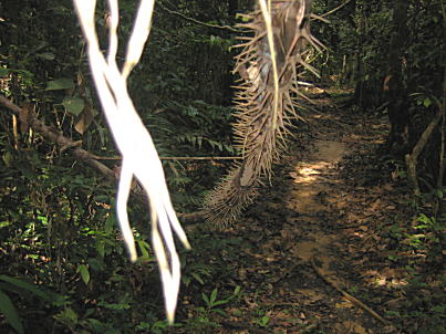 ![]() 〜楽しい密林4〜 森の中を歩いていて死のサソリに出会うのは、ドラクエの世界だけで十分である。 思えば20年近く前、伝説の勇者ロトの血を引くというテレビの中の勇者つよしは棍棒を振りかざし勇敢にサソリに立ち向かっていたが、いい年した大人になり実際にマレーシアでサソリに対面したニートつよしは、チンブラヤッホー♪と奇声を発しながら棍棒ではなく股間の珍棒を振り回すのみであった。 ちなみに、なぜここのところ股間がこんなに(振り回せるほど)フリーな状態かというと、元々の湿った空気の上に蚊取り線香の煙でいぶされるため、暑さに耐えられず全裸になっているからだ。何しろこの小屋はもちろん、周りにも半径数kmは人がいないだろうから、突然女性旅行者なんかが入ってきて「キャー! 変態!! なにやってんのよ! ……チラッチラッ(目を覆った指の間からちらちらと盗み見ながら)」と叫ばれることもなかろう。 せっかくなので、全裸のままサンダルだけはいて小屋から出て、少しだけジャングルをうろちょろしてみた(本当の話)。 いやー、これは非常に開放感があって良いぞ。何か原始時代、いや、猿人の頃の遺伝子が目覚めた気分であり、なんだか懐かしさすら感じる。ただ、やぶ蚊が凄くて常時体をはらったり駆け足を続けなければならないのが、面倒くさくて残念である。 冷静に自分の姿を見つめてみると、密林の中で全裸で手足や全身をさすりながらガニ股でその場駆け足する男という現世を超越した異次元の変態の姿であるが、万が一人間が通りかかったとしても、場所柄わいせつ物陳列罪で逮捕されることもなく、ジャングルに住む未発見の部族(裸族)だと思われ保護される程度だろう。 蚊の襲撃はもちろん、はさみアリや蛭やサソリが怖いのですぐに小屋の中に戻り(じゃあ裸で出て行くなよ)、いよいよ寝る準備にかかったのだが、変態行為を止め動きもストップし落ち着いてみると、やって来たのは蛭やサソリの代わりにジャングル級の恐怖心だ。 もちろんローソクは一定時間の後に燃えつき、パソコンもバッテリーを使い切ってしまうわけにはいかないのでシャットダウン。すなわち真っ暗闇だ。この電気と人気のない粗末な小屋、その闇の中での恐怖はなによりも一番に霊的な物が出ないだろうかという怖さであり、そして次にドアに鍵がなく壁も空いていて野盗のような者に襲われないかという怖さであり、さらにはドアに鍵がなく壁も空いていて大蛇やヒョウやサソリなどの人間を襲う動物が入ってこないかという怖さである。なかなかここまで揃い踏みすることは珍しい、怖さの三国同盟ともいえる究極の恐ろしさだ。もし名画「モナリザの微笑み」をこのブンブンヨンにひと晩保管しておいたら、まず間違いなく翌朝にはムンクの「叫び」に変わっているだろうと思われる、モナリザも泣き叫ぶルネサンス級の恐怖である。 当然、そんな恐怖の中で寝られるわけがない。朝から晩まで1日中走り回って遊び倒し最後に「モンプチ缶 子猫用 ビーフのやわらか仕上げ」をたらふく食べて爆睡体制に入っている子猫でも、この場に連れて来たらあまりの怖さでひと晩じゅう目がギンギンであろう。 それに加えて、むき出しの木のベッドには一応パキスタンで買ったマントを敷いたのだが、それだけでは全然クッションが足りない。仰向けになると、体中の骨が固い木のベッドでぐりぐりされ、どうしようもなく痛いのだ。うつ伏せならばたわわな腹の肉が動物性マットレスというか肉布団になるのだが、以前読んだ産婦人科のQ&Aコーナーでは「うつ伏せ寝は必ず保護者の目の届くところでさせましょう」と書いてあったので、近くに保護者がいない今の状況では、オレはうつ伏せになるわけにはいかないのである。 怖くて痛くて寝られない夜は、なっがい長い。思い起こせば、今までの旅でも長い夜はあった。スーダンで食中毒になり腹の激痛で眠れなかった夜。ラスベガスで盲腸になり(なるなよ)腹の激痛で眠れなかった夜。インドで謎の下痢になり腹の激痛で……、腹ばっかりだ(涙)。とにかく、それらの苦しみの夜と比べても、このジャングルでのたった一人の恐怖の夜というのは、それらの夜と比べたら全然マシだな……。 スヤスヤ……(就寝)。 さて、なんだかんだ言って寝付いたのはもはやジャングルが朝の空気でほんのりと白みがかる頃であり、いろんな種類の悪夢からようやく脱出し生物の騒音と暑さで目が覚めたのは午前9時半であった。 それにしても、床が硬くてなおかつ恐怖の中で寝ると、散々な悪夢にうなされるものである。真剣に林の中で謎の人食い怪獣やらジェイソンやらオニババやらに追いかけられる夢を何回も繰り返し見た。しかも、ふと目が覚めて「あ〜、ゆ、夢だったんだ……」と思っても現実の状況も悪夢みたいなものだという(涙)。スヤスヤじゃねえよ全然。ていうか、なんだよこの部屋の中を飛び回る気持ち悪い羽音は。ぶーーーーーーーー