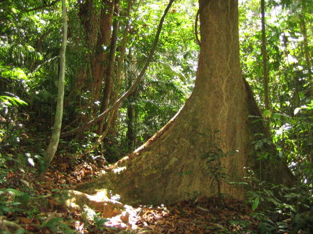 ![]() 〜楽しい密林6〜 ジミーと共に岩場から這い上がりやっとのことで直立し日の光を浴びると、太陽の貴さというものを全身を打ち震わせて感じた。ああ、素晴らしき陽の光。オレにとってギターとマリンスポーツそして一緒にバカをやる仲間達が命であるように、地上の全ての生命体は太陽を必要とし、太陽無くしては決して存在し得ないのだ。……オレは、休みの前日にはいつも浜辺で仲間たちと朝まで騒ぐのさ。 とはいえ、ふと思えば洞窟にいたコウモリは別に太陽を必要としていなさそうだが、あれは地上の生命体じゃなくて地底の生物だからいいのだ。だいたい、リラックスした状態が上下逆さまの体勢だというのがふざけている。そんなのあり得ない。時々AVを見ていると女優が逆さまにされているシーンを目にするが、みんな「こわ〜い!」とか「やめて〜!」などと言っており、リラックスには程遠い姿じゃないか。もし寝る時ですら逆立ちをしているコウモリの奴等に井村コーチが目をつけて特訓を始めてしまったら、次のオリンピックのシンクロナイズドスイミングは表彰台をコウモリ軍団に独占されてしまうに違いない。IOC関係者もメダルをかけるのを躊躇してしまう不気味な光景である。そしてその次のオリンピックでは、シンクロナイズドスイミングは公式競技から外されるだろう。 この際、逆さになっているコウモリに「てぶくろ」と書いた紙を見せて「これ何て読む?」と聞き、答えが返って来たところで殴りまくって絶滅させてやるのが今後のシンクロ界のためではないだろうか。……なお、逆さまだからといって「わかのぼんちたけむらたけこ」を読ませて遊んだりしてはいけない。 さて、オレたちはまずジミーの彼女が持つ洞窟の入口へ帰還しなければならないのだが、しばらくツタや枝葉をなぎ払い進んでもなかなか戻れない、と言うより今自分たちがどの方向へ進んでいて、戻るにはどの方向へ進めばいいかということが全くわからなくなった。 ↓前を行くジミー ![]() 背伸びをし、時にはその場でジャンプして辺りを見回しなんとか進行方向の手がかりを探ろうとするのだが、とにかく周囲を囲む木とその木を覆う無数の葉に阻まれて視界は遮られる。くそ、邪魔な葉だ……。せめて不治の病にかかり「窓の外に見える葉っぱが全て落ちたら、私も死ぬのね」と嘆いている入院中の少女だったら、ここに連れてくればジャングルが消滅するまであと200万年くらい生きられるかもしれないが、健康な旅行者にとってこの生い茂る葉は邪魔なだけである。そりゃあ酸素を作るという立派な役目を担っているのかもしれないが、命あっての光合成である。まずは光合成よりも旅行者を無事帰すことを優先して欲しい。酸素のことを考えるのはそれからではないだろうか? とにかくオレたちは人が通った形跡がありそうな、枝や草が踏み潰されているような気がする部分を探して進んだ。しかし、藪の斜面を上っても下っても彼女の姿、洞窟の入口は見当たらない。おおい大丈夫かよ……こんなことしてるとサソリが……毒蛇が……軍隊アリが……マレー虎が……(涙)。 さらに10分ほど進んだだろうか、目の前には下方に降りる急斜面の岩場が表れた。……険しいが、進むしかない。オレは先頭を切り、高飛び込みの要領で空中回転ののち頭から着地しようと跳躍の体勢に入った。見てなさい、私の金メダルへの飛び込みを!! ライバルは郭晶晶(グオチンチン)よ!! 負けないわよチンチンっっ!!! 「待て、ちょっと待て作者!」 「止めないでっ! 行かせてっっ(涙)!! これは、女と女のプライドをかけた戦いはなのよっっっ!!! ちなみに私のライバルは郭晶晶だけど、郭晶晶のライバルはカナダのデブなの」 「いや……、よく見てみろよ。ほら、下にあるあの穴。オ、オレたち、あそこから出て来なかったか……?」 「えっ、そうだっけ」 「そうだよ。この岩場、一緒に上ったじゃないか」 「…………。そういえば……。たしかにそうだ。ここ、30分も前に通った洞窟の出口だ……」 おお、なんということだ。ジャングルを歩いていて「おい、この道、もうずいぶん前に通った道じゃないか!?」という定番のセリフを、テレビやマンガではなく本当のジャングルの中で聞くことになるとは。……もしかして、これもマンガじゃないの?? だってこんな絵に描いたような迷い方するなんて、現実的じゃないもん。普通さあ、大の大人が2人も揃って、一方向に進んでるつもりなのにいつの間にか逆向きに歩いてるって、そんなことあるわけないじゃん。子供じゃないんだからオレたち。目をつぶってるわけでもあるまいし。 …………。 「どうする? もう一度Uターンしてジャングルに突入する??」 「そうだな。他に残された道は……、この出口から再び洞窟に入り逆向きに進むことだが……」 「イヤッ!! それは絶対イヤッッ(号泣)!!! 暗くて何も見えなくて狭くて苦しいだけじゃあないのよあなた。コウモリがっ!! 何百匹という