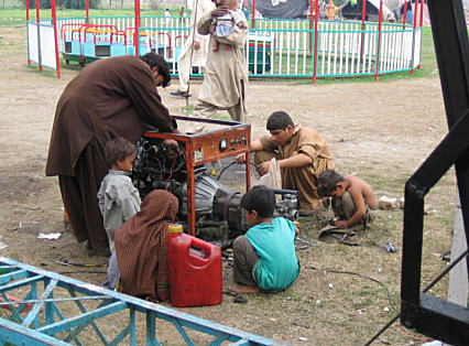 ![]() 〜こんな遊園地はいやだ(レポート風)〜 ウルタルトレッキングにトライした翌日、フンザを脱出したオレは山間地を30時間ほどバスに揺られ、国境近くの町ラホールに着いた。 ……いつもいつも思うけど、30時間凍えながらの激しい体験も、なんで文章だと1行で済んでしまうんだろうな。今度の内閣では、「辛い経験は1時間につき原稿用紙5枚分は書かねばならぬものとする」なんていうふうにぜひ憲法改正を行ってもらいたいものだ。まあ自民党への逆風が吹き荒れる中で、突然就任した福田総理にそこまでの決断を求めるのも酷だとは思うが……。でも国民投票が行われたらぜひ賛成票を投じに行くよ。今まであまり選挙に行っていないから、貯めておいた分を使って20票くらいは一度に投票してあげるから。こういう時のために今まで行かなかったんだから。 ……え? 選挙権て繰り越せないの?? し、知らんかった……ビックカメラのポイントとは違うんだ……。たしか昔は出来たのに。 当然、ラホールの宿に着いた当日と翌日はメシ以外は外に出ず、宿のベッドとほぼ一体化していた。今のオレとベッドは、「ねえ2人でひとつでしょYin&Yan」の関係である。昨日は四つんばいで雪山を上り下りするという、オレと同い年の乳幼児は誰もできないような高度なハイハイテクニックを発揮し、自他共に赤ん坊の中の赤ん坊だと認められたのであるが、おかげですさまじい筋肉痛だ。しかもその翌日から一泊二日30時間をバスの中で過ごしたとあれば、生半端な衰弱具合ではないのはわかってもらえると思う。今のオレは、縄張り争いのためノラネコと取っ組み合いのケンカをしてもあっさり負けるだろう。 まあしかしこのように赤ん坊だと認められたからには、もし日本に帰ってから仕事が無くなり生活に困ったら自ら赤ちゃんポストに入って保護されたいと思う。きっと両親は名乗り出ないと思うから、これを読んでいるお父さんお母さん方で、家計に余裕があって「もう1人くらいいてもいいな」と思う方がいらっしゃいましたらぜひ病院の方までご一報お願いします。 さて、まる1日を休養に充て、次の日は有名なモスクを観光しに行き「よし、見たぞ。とりあえずモスク見たから、これでこの町でのノルマは達成だろ! もういいだろ帰って? 疲れてるんだよオレは!!」ともはや一切観光を楽しむ気が無いオレだったが、建物から出てみると、道を挟んだ反対側に遊園地ふうの広場があるのに気付いた。なんだか観覧車なんてファンタジックなものも見える。 ……パキスタンの遊園地か。これはちょっと気になるなあ。た、楽しそうだなあ……。日本では、彼女がいない独身男は遊園地に入場する資格が無いから、いつもオレは遊園地に行きたいなあ行きたいなあと思いながら、若いタレントがディズニーランドでワイワイ言いながらレポートをする情報番組を見て、行った気になって我慢しているんだよな。「いつか彼女が出来たらディズニーランドでおもいっきりはしゃぐぞ!」と思いながら長年生きてきて、機会が無いままもうそろそろディズニーではしゃげる年齢じゃなくなってきてるんだよな(号泣)。 そうだよ。オレにはこのパキスタンの遊園地がお似合いなんだよ。ここがオレにとってのディズニーランドなんだよ!! 世界中だれだって微笑めば仲良しなんだよっっ!!! ということで入園チケットを買ってオレは広場へ入った。 ラホールといえば、パキスタンに来る旅行者で立ち寄らない者はいないという大都市。日本でいえば東京だ。そんな大都市にある遊園地なのだから、絶対に楽しいに決まっている。VFXやオーディオアニマトロニクスなどの最新技術を駆使したハイテクなアトラクションが揃っているに決まっている。決まってるんだよ!! ディズニーなんかよりよっぽど先を行ってるんだよっ!!! もうディズニーランドではしゃいでるカップルなんて全くうらやましくないねっ!! ラホールの遊園地を知ってしまったからには、彼女と一緒にディズニーランドなんか行きたくないね! 頼まれても行きたくないねっっ!!!! おおっと。 ![]() 最初に現れたのはいかにもVFXを駆使していそうなホラーの館である。夢や希望で有名な遊園地のはずが、入っていきなり大量のゾンビが出迎えるホラーショー。夢も希望もあったもんじゃない。 入り口の脇に備え付けられたスピーカーからは雷の音や、「キャーーー!!」という女性の悲鳴が繰り返し流れている。 うーん。怖いのは苦手だからここはパスしよう。 さて、次は…… 「ヘイそこの旅行者の人!」 「は、はい」 「なにビクビクしてるんだよ! ホラーの館、入っていけよ! たったの20ルピーだぞ!」 「おおっ、な、なんでホラーの館に客引きが……」 「ここまで来て入らないって何考えてるんだよ! 遊園地まで来ているのにラホール名物ホラーの館に入らないっておまえ! 絶対後悔するぞ! 弱虫! おとこおんな!!」 「ムキーッ!! オレは弱虫じゃない!! おとこおんなとは何だっっ!!! ホラーな