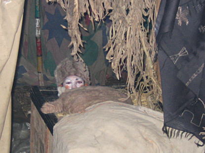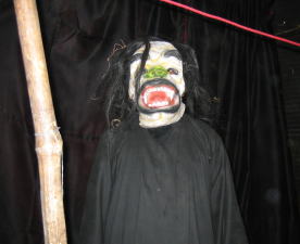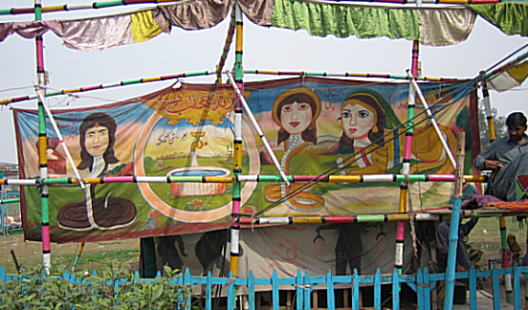 いっちょまえにデジカメはすぐ画像が見られることを知っているオバケと係員は、オレからデジカメを奪い、「オ〜〜!」と言いながらしげしげと液晶を眺めていた。……あんたら2人とも、テーマパークのアトラクション関係者として、少なくとも客が帰るまでは役作りに徹しろよ。 「じゃあオレはもう行くよ。他の催しも見たいから。じゃあね」 「ワーワー!」 「なんだっ! まだなんか用なの!! 初対面のオバケがオレに!!」 再びオバケは係員を捕まえてなにやら耳打ちしている。なんだなんだ。お礼に家に招待してくれたりするのか? オバケの家に? 本物のオバケ屋敷に? 怖いからイヤだよそんなの。 伝言を受けた係員が、またも通訳してオレに言った。 「すまんが、こいつ給料が少ないからいくらか金を恵んでくれって言ってる」 「知らんがなっっ!!!! 遊園地に遊びに来た客に夢の無い話をしてんじゃねーよっっ!!! テンション下がるだろうがっっ!!!!」 「ワーワー!」 「ワーワー言ってんじゃねえよテメー!! 客にせびってないで、がんばってスキルアップしてディズニーランドに面接に行け!!!」 「ワーワー(泣)!」 ワーワー言っている貧乏なオバケは無視し、オレはテントから出て次に行くことにした。 よし、気分を切り替えよう。きっと、たまたま今のホラーの館だけは予算が足りなかったんだよ。他のアトラクションであまりにも最新技術を使いすぎて、ここだけおかしくなってしまったんだよ。仕方が無いなあ。 おおっと。 ![]() ※以下それぞれ係員さんの許可を得て撮影しています これは……。 先ほどのホラー館とは桁違いの予算をかけていそうなこのテント。描かれているのは、どうやら顔が人間体がヘビの化け物だ。ここはもしかして、妖怪ヘビ女の館でしょうか。 うーん。ヘビは大嫌いだからここはパスしよう。 さて、次は…… 「ヘイそこの旅行者の人!」 「は、はい」 「なにビクビクしてるんだよ! ヘビ女の館、入っていけよ! たったの20ルピーだぞ!」 「おおっ、ヘビ女の館にも客引きが……」 「ここまで来て入らないって何考えてるんだよ! 遊園地まで来ているのにラホール名物ヘビ女の館に入らないっておまえ! ヘビ女だけじゃなく、ライオン女もいるんだぞ!」 「ほんとだ。一番右に描かれているスフィンクスみたいなのがライオン女ですね」 「そうだ! おまえ日本人だろう。それならぜひ見ていくべきだね。日本みたいな都会じゃあヘビ女もライオン女もいないだろう?」 「田舎にはいるもんなんですかっ!!!」 「そうだよ。いるところにはいるんだ。じゃあ20ルピーな。はいチケット」 「まあいいや。ヘビは嫌いだけど女は好きだから。さっきのホラーの館の汚名を返上してもらおうじゃないですか」 「はいお1人さま入場ーよろしくー」 テントに入るとやはりおっさんのスタッフがおり、これまたロープで仕切られた部屋の向こう側には、黒い幕で隠されているところが2箇所ある。当然、それぞれにヘビ女とライオン女が捕獲されているのだろう。まあ本物でないとしても、オーディオアニマトロニクスや最新のVFX処理などでまるで生きているかのような空想上の動物の姿が見られるはずである。それだけは間違いない。 「準備はいいかニイちゃん。まずは世にも珍しい、妖怪ヘビ女の登場だ!」 「うおー、怖いよー! でもワクワク!!」 テントの中で咥えタバコという防災意識の全く無いスタッフが一つ目の幕を上げると、そこにはたしかに顔が人間、体がヘビのヘビ女が捕まっていた。 ↓ヘビ女さん ![]() なるほどー。 どうも中途半端な感じが否めませんな……。 たしかに顔は生きているかのようだ。というか現実に生きている。しかし胴体は微動だにしていない。四方から棒で固定されてるし。それに藁とかきらびやかな折り紙の飾りとかがごみごみとあって、見えにくいんですけど。手前のヘビの胴体がヘビだとわからなくて、最初はヘビ女じゃなくて魚女だと思ったぞ。 というかひとつわからないんですが、そのモコモコした越冬隊みたいな帽子はなんなんですか? なんでヘビ女に帽子を被せる必要があるんですか。美しい黒髪を見せてくれれば妖艶な感じでヘビ女にピッタリでしょうに。勿体ない。 「どうだヘビ女! こんなの今までに見たことあるか?」 「見たことない。そして特に感動もない」 「おおっと! ライオン女を見ずにそんなことを言われるのは心外だなあ! いいか、覚悟しろよ〜、次は世界中探してもここラホールでしか見られない、ライオン女だ!」 「おお〜。では一度気持ちをリセットして、ワクワクドキドキ」 まずは一つ目の幕を下ろしてヘビ女を隠し、一呼吸おいてスタッフが次の幕を上げると、そこにはまさに顔が人間、体がライオンの…… ↓ライオン女さん ![]() 待て待てっ。ちょっと、待てよおまえ。 あの、ライオン女っていうけどさあ、顔しか無いじゃないか。人間の顔はついてるけど、肝心のライオンの胴体はどこにあるんだよ。箱の後ろに隠れて見えないだろうが!! …
