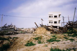 パレスチナ夜 1 〜ガザ〜 キュラキュラキュラキュラ・・・ 次第に接近してくるイスラエル軍の戦車のキャタピラの音。 キュラキュラキュラ・・・ シーン(静寂)・・・。 ズパパパパパパパパパパパパパ 「ぎゃーーーーーーーーーっ!!!」 「撃ってる!!撃ってますって!!!撃ってますますます!!!!」 バハ「おーい、音を立てるとこの家が標的になるぞ。」 「・・・。」 「・・・。」 シーン・・・ キュラキュラキュラキュラ・・・ 「行った?行った?免れた??」 「家建ってる?オレ生きてる?明日はある?」 バハ「あー、どうやら戻ってったみたいだな。おい、おまえら大丈夫か?」 ジョ〜〜 バハ「おしっこをもらすんじゃないっ!!!」 「((( ;゜Д゜)))ガクガクブルブル」 「((( ;゜Д゜)))ガクガクブルブル」 バハ「・・・。」 ここはイスラエルの中にあるガザ地区の南部、ラファという町。 オレはここで旅仲間のスーさんとともに、毎夜確実に一定量以上チビっていた。 イスラエルの中にあるといっても、正確にはここガザ地区はパレスチナ自治区といって、このあたりに元々住んでいたパレスチナ人の居住区(自治区)になっている。 ラファという町はエジプトとの国境があるのだが、国境付近のパレスチナ人の家をイスラエル軍が毎日せっせと破壊している。ある時はブルドーザーでなぎ倒し、ある時は戦車砲で爆破。もちろん人が住んでいようといまいとお構いなし。たとえ家を破壊するまで至らなくても、今日のように夜になると軍が戦車に乗って現れ、ところ構わず撃ちまくるのだ。 →イスラエル軍さえいなければ元はキレイな住宅地。バハ「アーハッハッハ。このCMおもしろいだろう?」 「・・・。よく銃の乱射の直後にテレビ見て笑えるよな・・・。」 バハ「そんなこと言ってたらなんにもできないじゃないか。銃声なんてほとんど四六時中だし。」 「まあたしかにそうだけど。慣れってすごいなあ・・・。」 バハ「ところで、日本人って普段どんなことを考えて暮らしているんだ?」 「そうだなー。まあ大人だったら仕事のこととかかなー。」 バハ「そうか。」 「パレスチナ人はどうなの?」 バハ「オレ達は毎日いつ家が壊されるか、いつ殺されるかということばかり考えているよ。」 「・・・。」 バハ「オレ達はイスラエル軍に自由も命も財産も全て取り上げられているからな。パレスチナ人だというだけで普通の人間が持っている権利はなくなってしまうんだ。」 「・・・。」 バハ「パレスチナ人だというだけで、外国に行くこともできないんだ。」 「・・・。」 バハ「パレスチナ人だというだけで、仕事もさせてもらえない。」 「・・・。」 バハ「パレスチナ人だというだけで、この前泊まりに来たボランティアのスウェーデン人に結婚してくれと言ったけど断られた。」 「・・・。いやそれは違うと思うんですけど。」 バハ「まああまり遅くまで電気つけてると戦車に狙われるから、もう寝るぞ。」 「ぎゃーっ!!それを最初に言ってくれ!!!すぐ電気消してよ!!!」 一体、なんでオレ達がこんなところにいるのかというと、昨日エルサレムの宿で会ったイギリス人の女性ボランティアに、「ガザ行くけど一緒に行く?」とまるでお台場にでも行くような空気で誘われ、「もしかしてこれはインターナショナルナンパ??」などと勘違いしたオレと、同じ宿だった日本人のスーさんは、よくわからない淡い期待を抱きよだれを垂らしながら彼女に同行したのである。 ちなみに、イスラエル軍がパレスチナの家を壊している理由は不明。ボランティアの人達やパレスチナ人自信が一生懸命考えているのだが、なぜイスラエルがバカスカ破壊活動を行っているのか全くわからない。たとえコナン君でも放送時間中にこの謎は解けないであろう。しかしそんなことしてたらパレスチナ人が怒って戦争にでもなるんじゃないか?と思ったら、そうでもなかった。 なぜなら、パレスチナ人はイスラエル軍に武器を全て取り上げられているため、石を投げるしか対抗手段がないのだ。イスラエル軍の方はアメリカ様の毎年20億ドルを超える援助のおかげで、世界で5本の指に入る屈指の軍事力だが。 かたや戦車、迫撃砲、ミサイル、機関銃。かたや石。 それでも実際パレスチナ人は戦車に対して投石で戦っている。そしてもちろん死ぬのはパレスチナ人だけ。つまり、これは戦争ではなくただイスラエル軍がパレスチナ人を殺しているだけなのだ。 もちろん武器を隠し持っているパレスチナの武装グループもいるが、規模でいったらB−29対竹槍のレベルと言っても決して過言ではないと思う。 ←右がバハ、左は自分の家がそろそろ危ないんでバハ宅に避難中のモハマド。ちなみにバハのおばさんは先週家をイスラエル軍に破壊され、降ってきた破片で頭を打って死にました。 さて、翌朝再び機銃掃射の音で布団を濡らしバハの家を追い出されたオレとスーさんの身柄は、ボランティア団体のワゴン車に拘束された。 ワゴン車には、オレ達の他にも