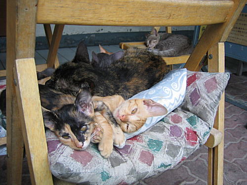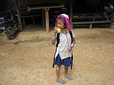 ![]() 〜可憐ゾクッ!〜 やあみんな。また会ったね。嵐の翔だよ。 僕は、作者の中にいる4番目の人格なのさ。1人目はエロ変態の作者本人、2人目は苦痛を請け負うレイゲン、そして最も新しい3人目、アイドルの部分を担当するのがこの僕、嵐の翔なのさ。 でも、作者がアイドルとしてチヤホヤされるのはだいたい地球が氷河期に入るのと同じ周期だと言われているから、次にこの僕が登場するのは多分あと4万年後ぐらいなのさ。でも4万年後に、必ずまた10分だけモテモテになる時が来る。だからそれまでは希望を持って生きるんだ作者。翔はいつでもキミの中にいるんだ! ただ4万年の長い眠りについているだけなんだ!!! ああ、長い……(号泣)。モテない状態で4万年を過ごすのは辛いです(涙)。誰か、それまで僕を冷凍保存して下さい。そして4万年に1回だけ甦らせてください。 ということで、エロ変態でモテない本来の私はスコータイ遺跡観光を終え、さらに北方のチェンマイにやって来ましたよ。 おっ。なんだキミは。目の周りに何かついてないかい? ![]() どれどれ、近寄ってみるか。 かわいそう……。 ![]() あなた、きっといたずらっ子が用意した、目をつける部分にインクをたっぷり塗った双眼鏡を覗いてしまったんだね? 「ほらちょっと見てみろよ! 向こうの山に激マブのポメラニアンがいるぜ!」とか言われてどうしても気になって覗いちゃったんでしょう。わかる、悔しいのはわかる。でも、オレは味方だから。オレは決して笑ったりしないから。絶対に馬鹿にしたりしないから。だからそんな恨めしい目でオレを見ないでおくれ。 …………。ぎゃはははっ!! なんだその顔(笑)!! バーカバーカ! そしてチェンマイの宿にはネコの盛り合わせが…… ![]() ↓この構図だと、灰色のネコを、体の両側に頭がついている怪奇な茶色ネコがグルっと巻いているように見える。 ![]() ちなみにチェンマイでは特に出かけることもなく(何のために来たんだ)、ほとんどの時間を宿のネコを観光して過ごしていた。ある夜、ニャーニャー言う子猫を撮影した動画を部屋でくり返し見ていたら、おそらく鳴き声を聞いてオレが子猫を拉致したと思ったのだろう、親ネコが颯爽と助けに来た。さすが親。 そこで、「これはAVI形式の動画なのです、鳴き声は聞こえますが本物の子猫な訳ではありません」と親を説得しながら一緒にロビーまで帰る途中、ふと窓が開いていた隣の部屋を覗いたら、室内のトイレで全裸で便器に座って歯を磨いている日本人旅行者(男)と目が合った。さすがにあちらさまは「やばい、ここ30年の間で1番恥ずかしいシーンを見られたっ(涙)!!」という驚天動地の表情をしており、オレは動揺してネコと一緒に宿の外まで逃げたのであった。 チェンマイの屋台で売られている虫たち ![]() おやつとして買ってみました。いろんな虫の詰め合わせです。 ![]() いただきま〜す。……ってこんなもん食えるかっ!!!! ![]() まあそんな感じで、チェンマイでは何をしに来たのかわからないまま犬猫と戯れて2日を過ごし(動物が好きな男の人って優しくて誠実で信頼できるってよく言うわよね)、翌日宿をチェックアウトし(本当に何をしに来たんだ)長距離バスで西へ8時間。曲がりくねった山道を窓の開かないエアコンバスで右に左に走り乗客のゲロが乱れ飛び、お互いにかけ合う胃液で体が溶け肋骨が見えてメタルKのようになりながら、ミャンマーとの国境近く、メーホーソンという村まで移動した。このメーホーソンでオレは、山岳民族であるカレン族の村を訪れるツアーに参加することにしたのだ。 さて、1泊して次の日早速そのカレン族の村に出かけるのだが、ツアーと言っても今日は他の参加者がおらず、オレと運転手さんのマンツーマンであった。いやなんだよねこういう外国人と一対一の状況……。なんで犬や猫とは一対一で何時間でもいられるのに、人と一緒だとこんなに面倒くさく感じるんだろうか。もしかしてオレは、人として欠陥があるのだろうか(そうだよ)。いや、でも、外国人と一緒だと面倒くさいけど、日本でたまに家の前を歩いている幼稚園の女の子を部屋に上げて遊ぶ時は、深夜までずっと2人きりでも楽しいんだよな……。女の子が泣き出しても全然面倒くさいとか思わないし。おかしいなぁ。 ※本気にしちゃヤーよ 中央に見えるのはメーホーソンの村 ![]() まず、メーホーソンという土地自体がなんとなく大麻の香りが漂う、この地方に現れるウルトラマンは胸にカラータイマーではなくカラー大麻を付けていそうなタイ・ミャンマー国境付近の山の中にあるのだが、さらにそこからRV車で山に入り川を横切ったり覚せい剤の売人を轢き殺したりしながら、いくつもの山を越え数時間を走った所にカレン族の住むナイソイ村がある。 少数民族の村とはいえツアーに組み込まれているということは、ケニアの「観光用マサイ族の村」と同じくかなりみなさん観光慣れしているわけだが、それはそうとカレン族の女性は非