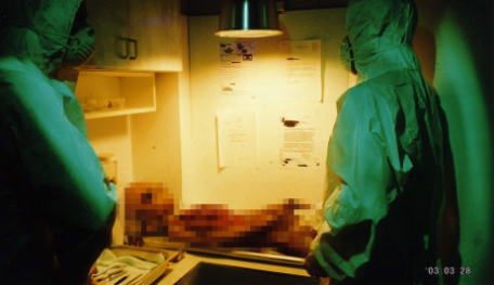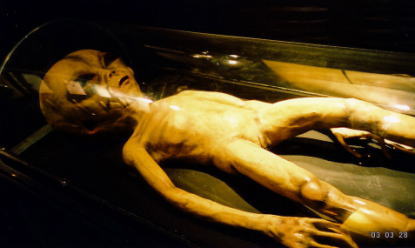 少女の頭の上から、何かが出ているのがおわかりになるでしょうか? その下にある拡大図を見てもらうとはっきりとその姿が確認できると思います。一見宇宙服を着た人間のようにも思えますが、そうではありません。 よく考えてみてください。一体どこに好んで少女の頭に突き刺さる宇宙飛行士がいるでしょうか? そもそもこの大きさからしても、明らかにこれは人間のサイズではないということがわかると思います。 おそらくこの宇宙人は、家族の団欒というものにあこがれ、ついつい写真を撮っているとも知らずに少女の頭から顔をだしてしまったものだと思われます。 こうして考えると、宇宙人といっても我々地球人となんら変わりない感覚を持ち合わせているということがわかります。 もちろん、僕が今回こんなにも宇宙人側に肩入れしているのには理由があります。 見たのです。 そう、あれは3月の薄曇りの肌寒い日でした。 その時僕はなんとかアフリカを脱出し、中東を旅していました。たしかもうアメリカ軍によるイラクへの空爆が始まっていました。 ただ、なぜだかわかりませんが、今となってはあの時の状況は記憶にもやがかかったようにはっきりしません。もしかしたら疲れから幻覚を見たのか、それとも単に夢だったのかもしれない、とも思っていました。 しかし日本に帰国後現像に出した写真には、たしかに写っていたのです。 あの恐ろしい光景が。 2枚目の実験中の写真に関しては、はっきりとこの写真を公開してしまうとおそらく僕やムクの身に危険が及ぶと思いますので、今回はモザイクをかけさせていただきたいと思います。ただモザイク越しにも、その恐ろしい光景がが確認できるでしょう。 果たして彼らの目的というのは一体何なのでしょうか。地球人と友好を結び、お互いの技術や資源を交換し共存していこうというのか、それとも彼らの圧倒的な科学力と頭脳で地球を植民化しようとしているのか。 そして日本を放浪する白装束集団との関係は・・・。 未だ、全ては謎に包まれています。 特殊なカプセルに保存され横たわっている恐ろしい現場(隠し撮り) ![]() 白装束集団の手により人体実験が行われている、もしくは病気になって治療中の恐ろしい現場(隠し撮り、モザイクはこちらでつけました) ![]() もしモザイクを取った恐ろしい姿を見たいという命知らずな方がいらっしゃるようでしたら、杉並の作者隠れ家を見つけだしお訪ねください。 ただしその時は身に危険が及ぶのを覚悟の上で・・・。 |
